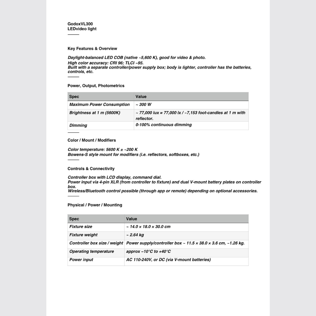 A versatile and high-output daylight-balanced LED light, designed for professional video and cinema lighting. With 300 W COB output, exceptional color accuracy, and a compact footprint, the VL300 delivers powerful lighting for interviews, product shoots, and production sets.