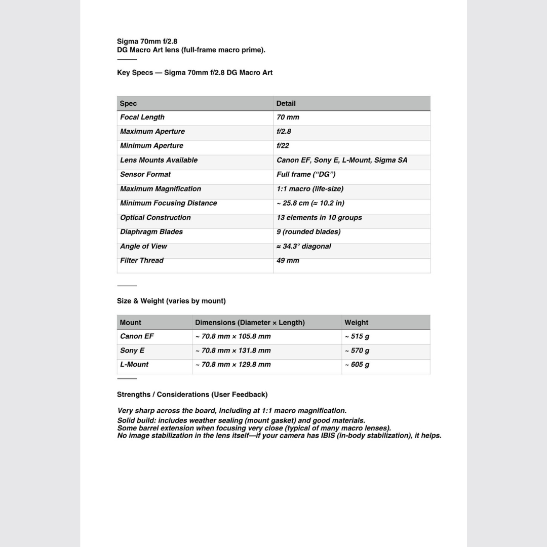 A macro lens delivering life-size 1:1 magnification with superb sharpness and minimal distortion. Ideal for product, nature, and fine detail photography.