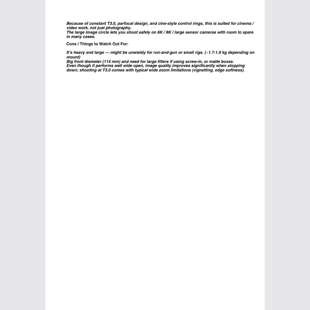 A durable cinema zoom lens with consistent optical performance and geared rings for professional use. Delivers sharp images and smooth control for video production.